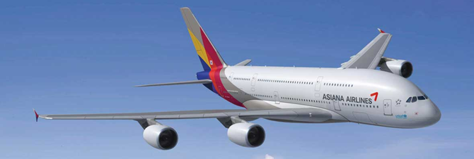 Asiana Airlines, headquartered in Seoul, Republic of South Korea, was founded in 1988. The global airline and its subsidiaries Air Busan and Air Seoul deserve domestic and international routes with a mixed fleet of 108 aircraft of types A320, A330, A350, A380, B767, B777 and B747.